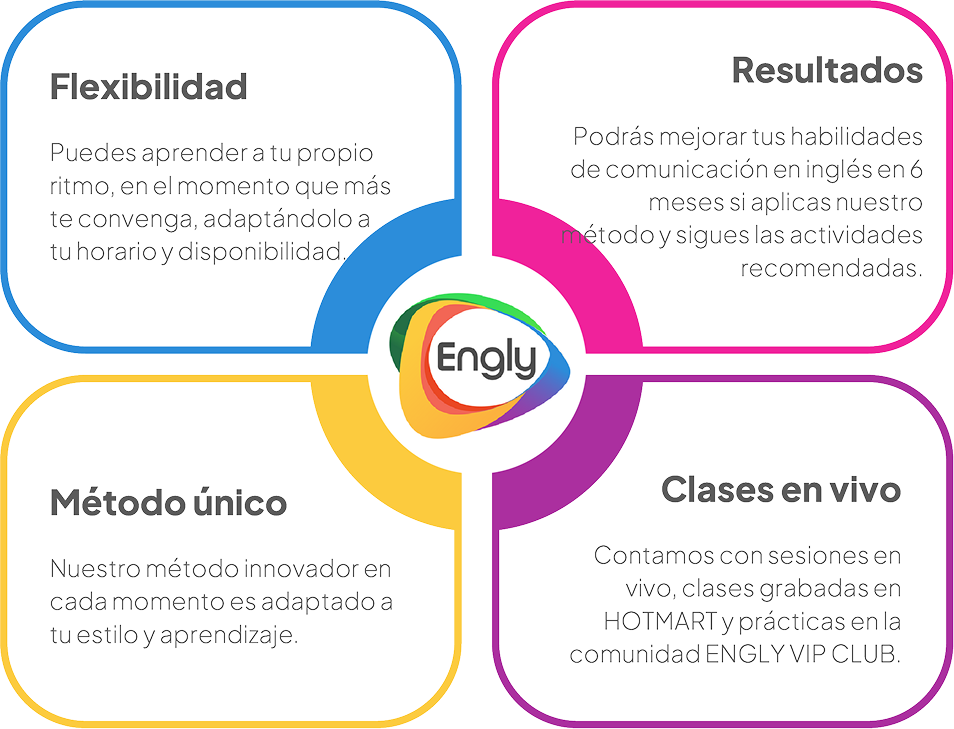 ENGLY proporciona una experiencia de aprendizaje de inglés enfocada en desarrollar competencias comunicativas prácticas.
